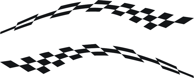 Racing Checkered Side Stripes Decals. Availabe in Red, Black & White. Sizes will vary depending on the vehicle. Standard size is 190cm x 90mm